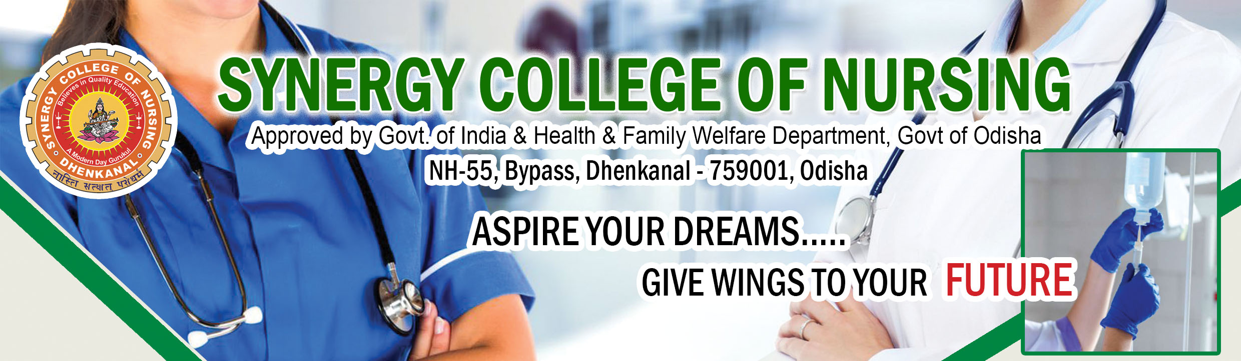 Synergy College of Nursing (Approved by Directorate of Medical Education and Training, Govt. of Odisha) By the side of NH 55, Banamali Prasad, Dhenkanal Tel: 06762-225905(O) Email: [email protected] Website: www.synergynursing.ac.in